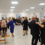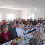 Potem rozpoczęła się biesiada. Poczęstunek przygotowany pod kierunkiem naszej koleżanki smakował wybornie. Na deser, ze względu na porę roku królowały upieczone przez koleżanki z UTW szarlotki, ciasta ze śliwkami, ale też serniki, andruty, kremówki i wiele innych smakowitości. Nie zabrakło owoców, tradycyjnych opolskich krówek i wyrobów mlecznych. Zespół „Dąbrowianki” ubrany w regionalne stroje, zaprezentował koncert wielu znanych i lubianych piosenek. Do śpiewu włączała się więc coraz większa grupa uczestników spotkania. Przy dźwiękach akordeonu świetnie się bawiono. Przy kawie, herbacie, do późnego wieczoru, toczyły się rozmowy, nikt czasu nie liczył. Goście, obdarowani upominkami przez Burmistrza i Starostę, z żalem opuszczali spotkanie. Czekała ich nocna podróż do domu.